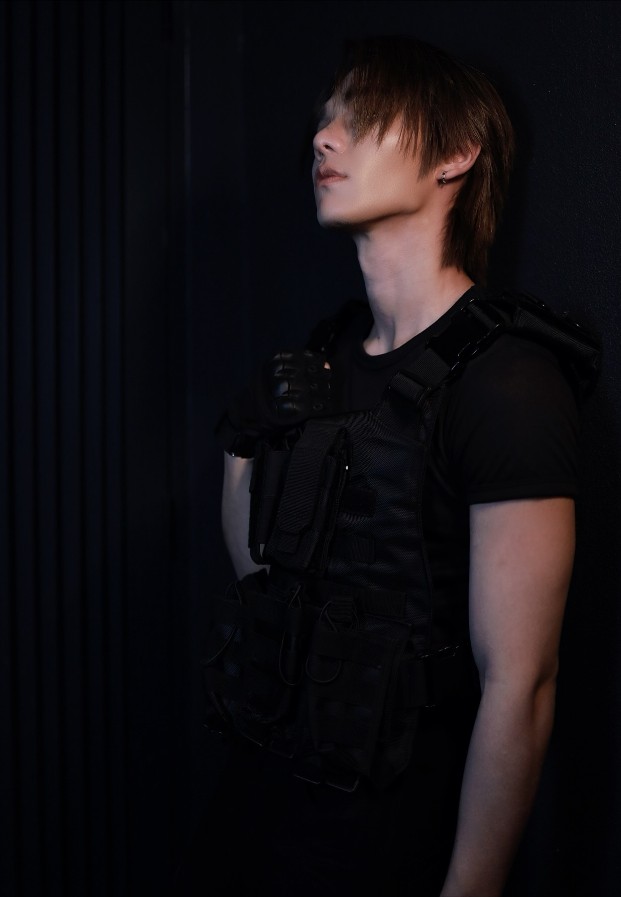 Jeff ปรากฏตัวในชุดเครื่องแบบตำรวจ Raccoon City Police Department (R.P.D.) พร้อมเสื้อเกราะสีกรมเข้ม ถุงมือหนัง และอุปกรณ์ Tactical ครบเซต ทุกมุมของการแต่งตัวสะท้อนถึงความใส่ใจในรายละเอียด จนแฟนๆ ต่างชื่นชมว่าคอสเพลย์ครั้งนี้ “เหมือนตัวละครจริง” โดยเฉพาะทรงผมบลอนด์ที่เซตขึ้นอย่างประณีต เพิ่มความหล่อและความเท่แบบฮีโร่เต็มขั้น